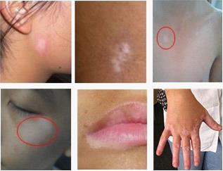 4、病灶触感:病发一般无自觉不适,不痛不痒,不红肿,但也有少数局部有轻微痒感。患处皮肤较光滑,不突出于皮肤,毛孔闭塞,无鳞屑,白斑在阳光下暴晒会有反应,具有一定的隐蔽性。
