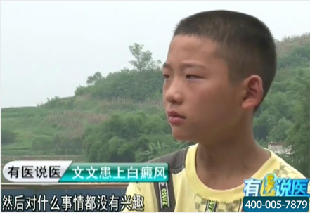 13岁的小男孩文文(化名)是一个活泼的孩子,年纪虽然不大,但是很有礼貌,很多人见了他都会喜欢上他。文文患上白癜风的时候,是在2012年的暑假,天气非常炎热,文文的姐姐发现文文脖子上有个白色的印子,一天天在扩散变大,姐姐就告知母亲,文文是不是得了什么病?后来家里人给文文买来了治癣的药来擦,可事与愿违,身上的白斑不仅没有擦好,反而越擦越严重。由于白癜风在脸部和脖子等暴露部位,给文文的学习和生活带来了很大的影响。文文觉得自己的白斑不好医,甚至会治不好,小小年纪的无奈让人很是心疼。