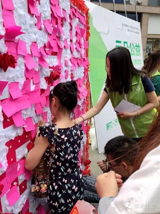 2016年4月30日14点,“云朵公益”计划《遇见·改变》公益路演在成都春熙路上演。现场400支玫瑰,换来500多张饱含真情与祝福的便利贴。至此,“云朵公益”正式拉开序幕。